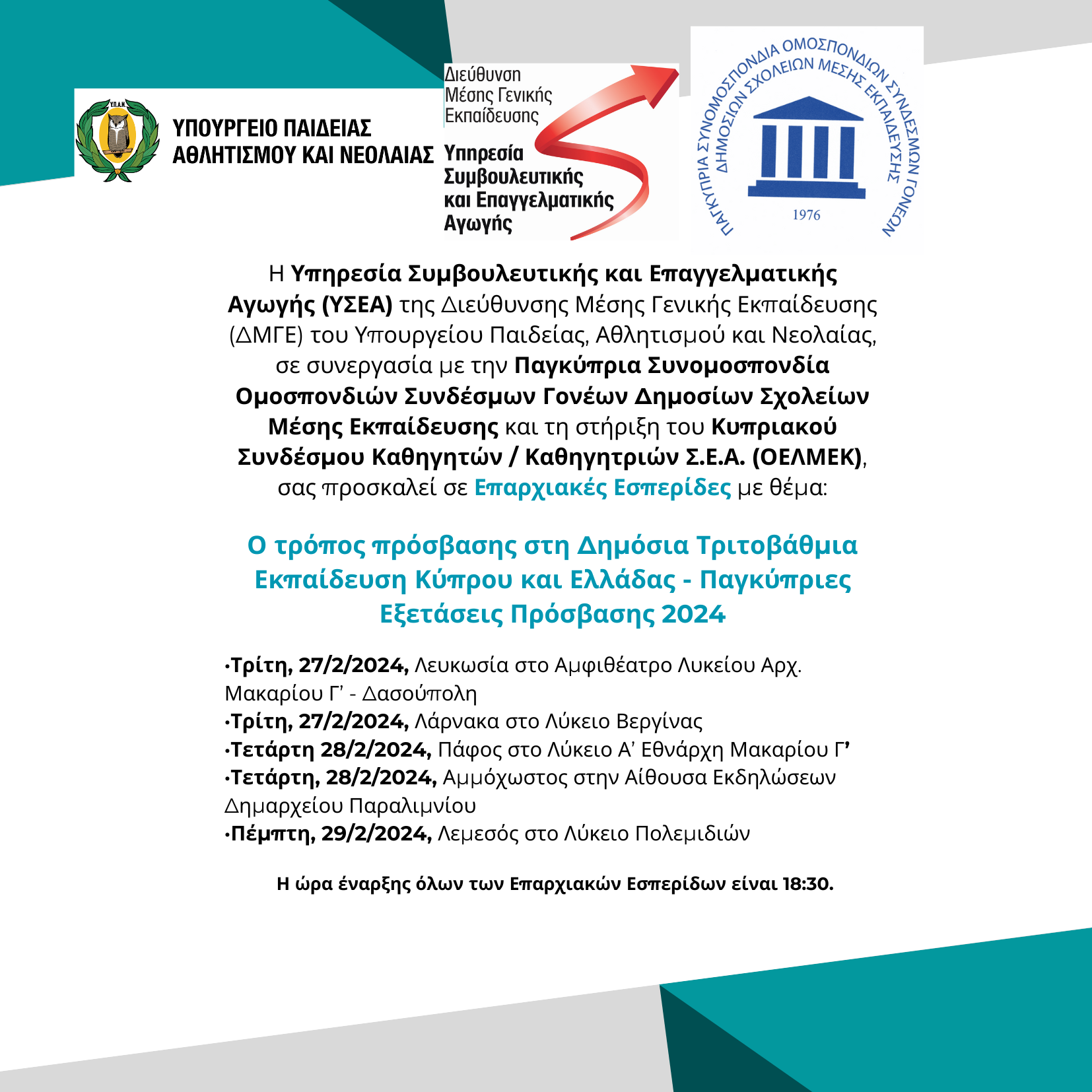 01/12/2024 9ος Παγκύπριος Μαθητικός Διαγωνισμός Γυμνασίων στην Αρχαία Ελληνική Γλώσσα και 1ος Παγκύπριος Μαθητικός Διαγωνισμός Σκυταλοδρομίας Αρχαίων Ελληνικών για Γυμνάσια